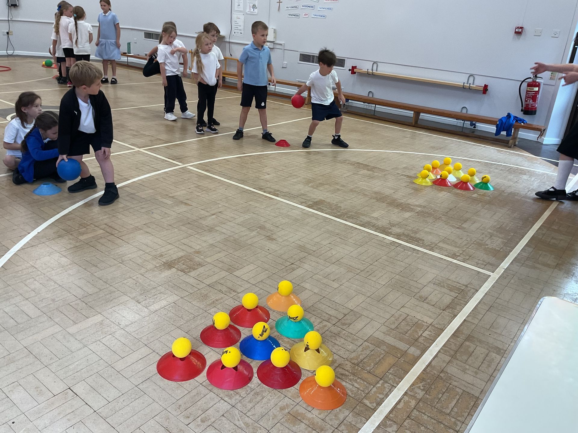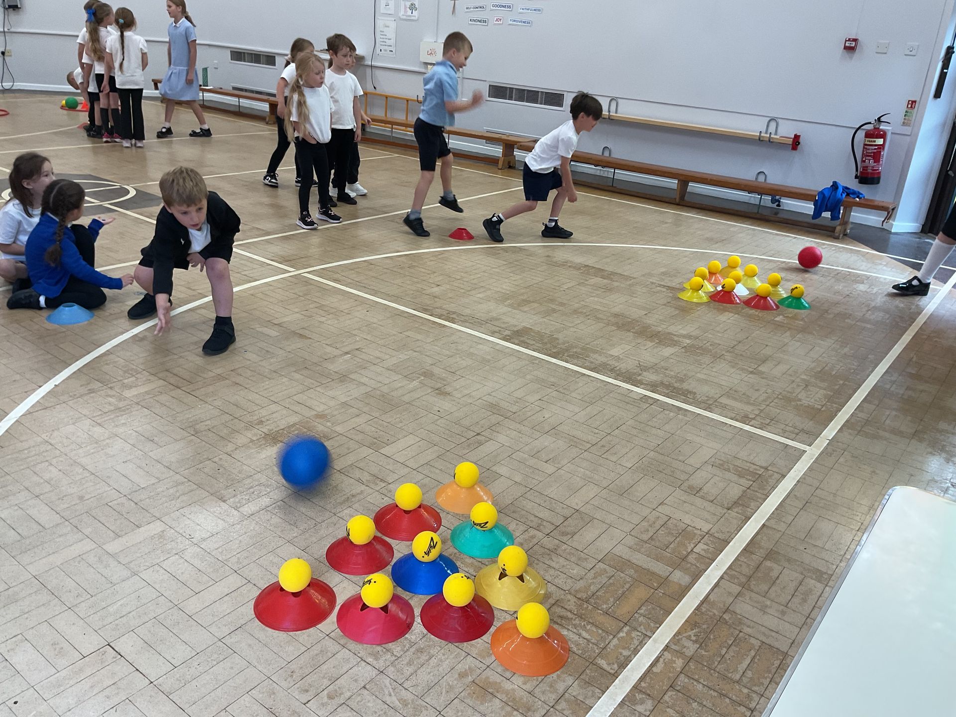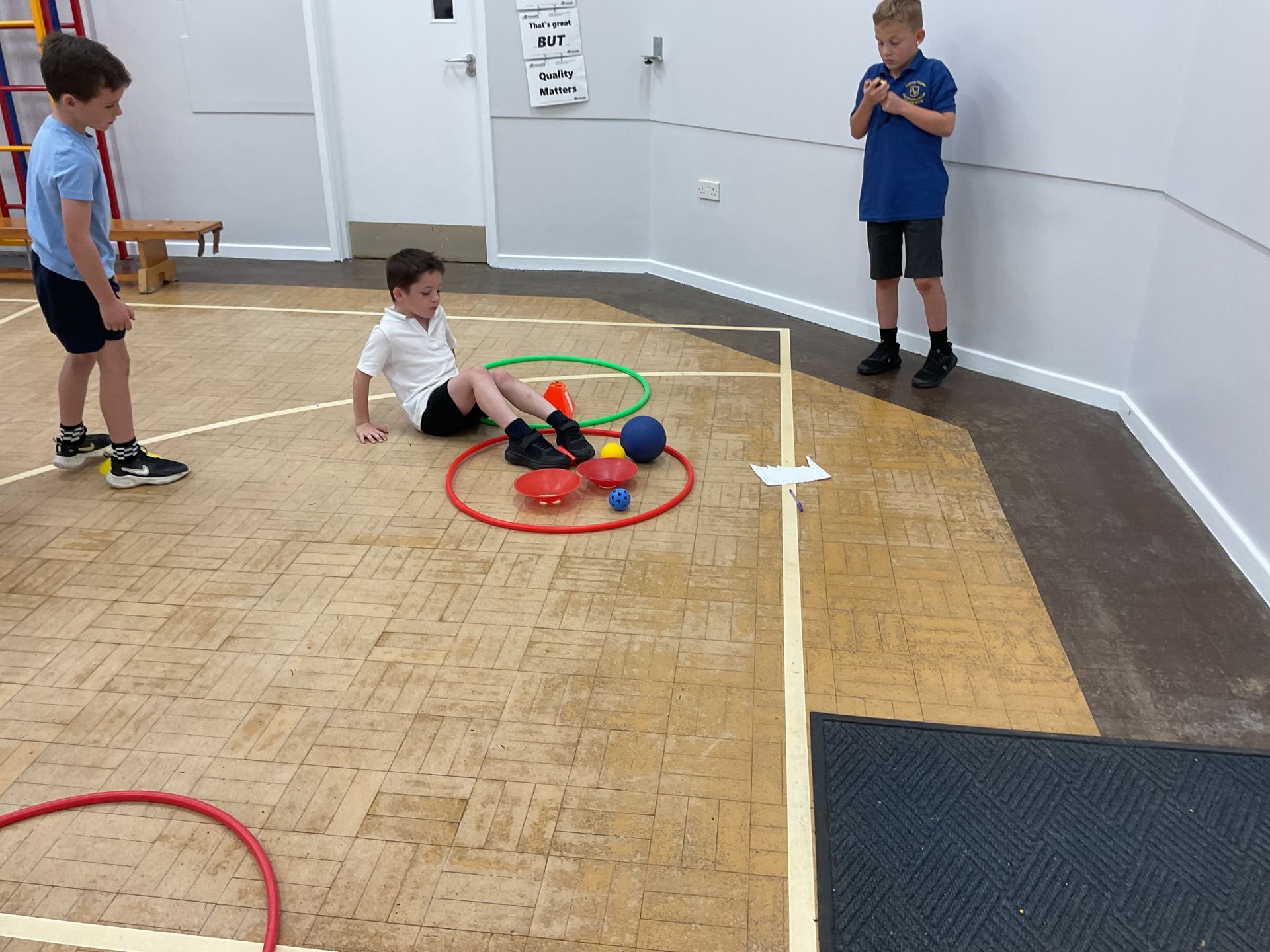 Reception: Bean bag tossing! The children played very well and had a great time playing in their first ever team event!