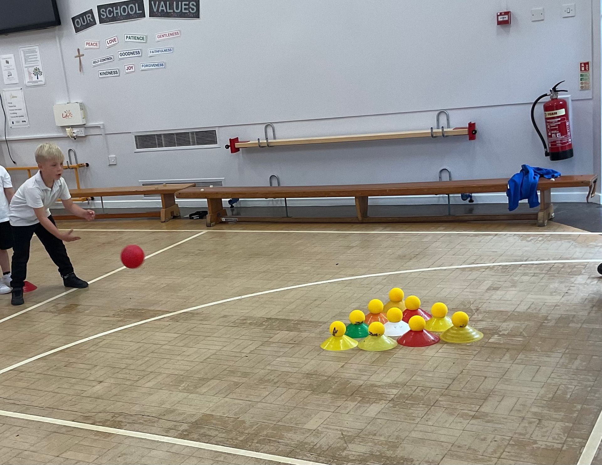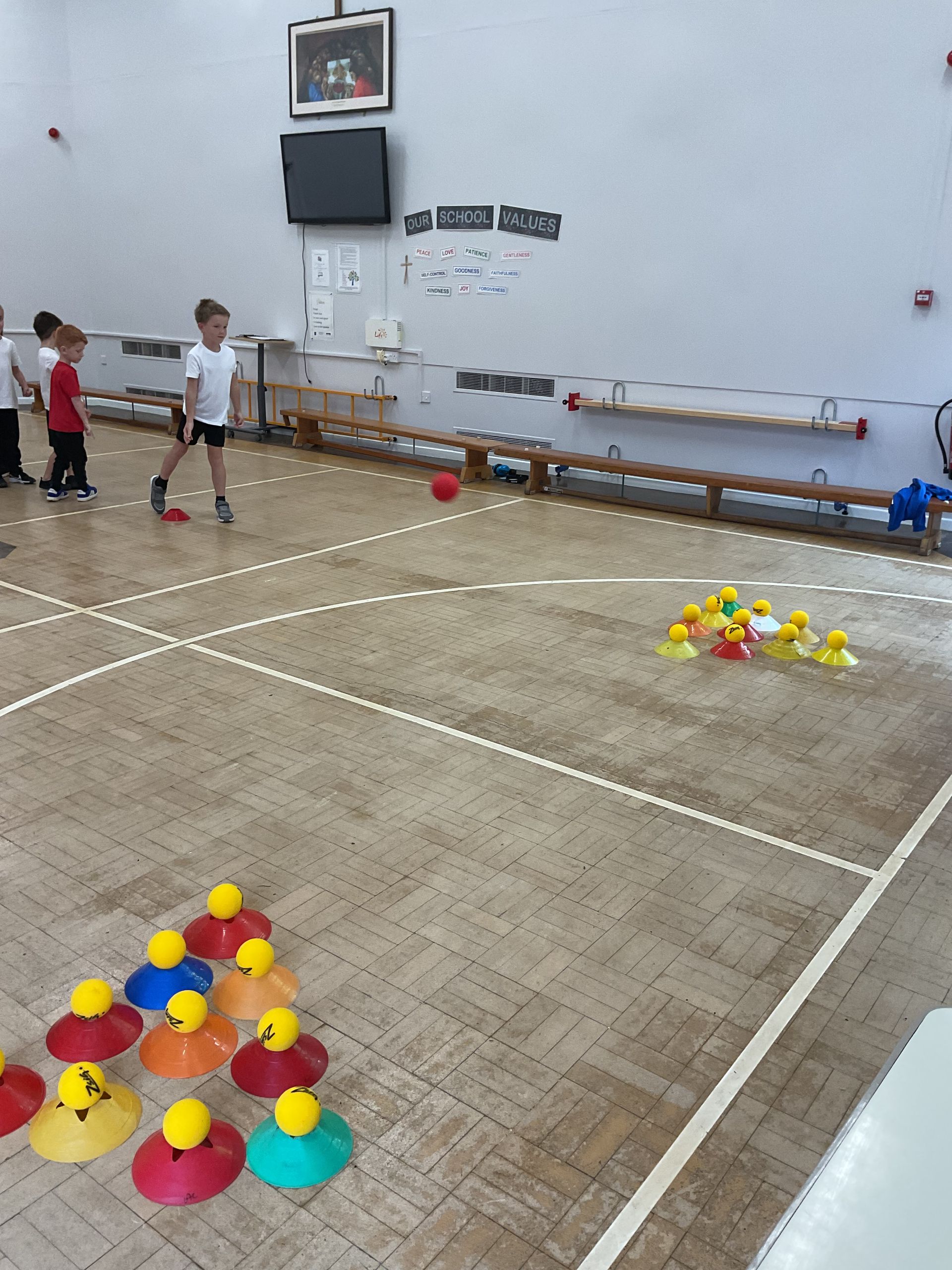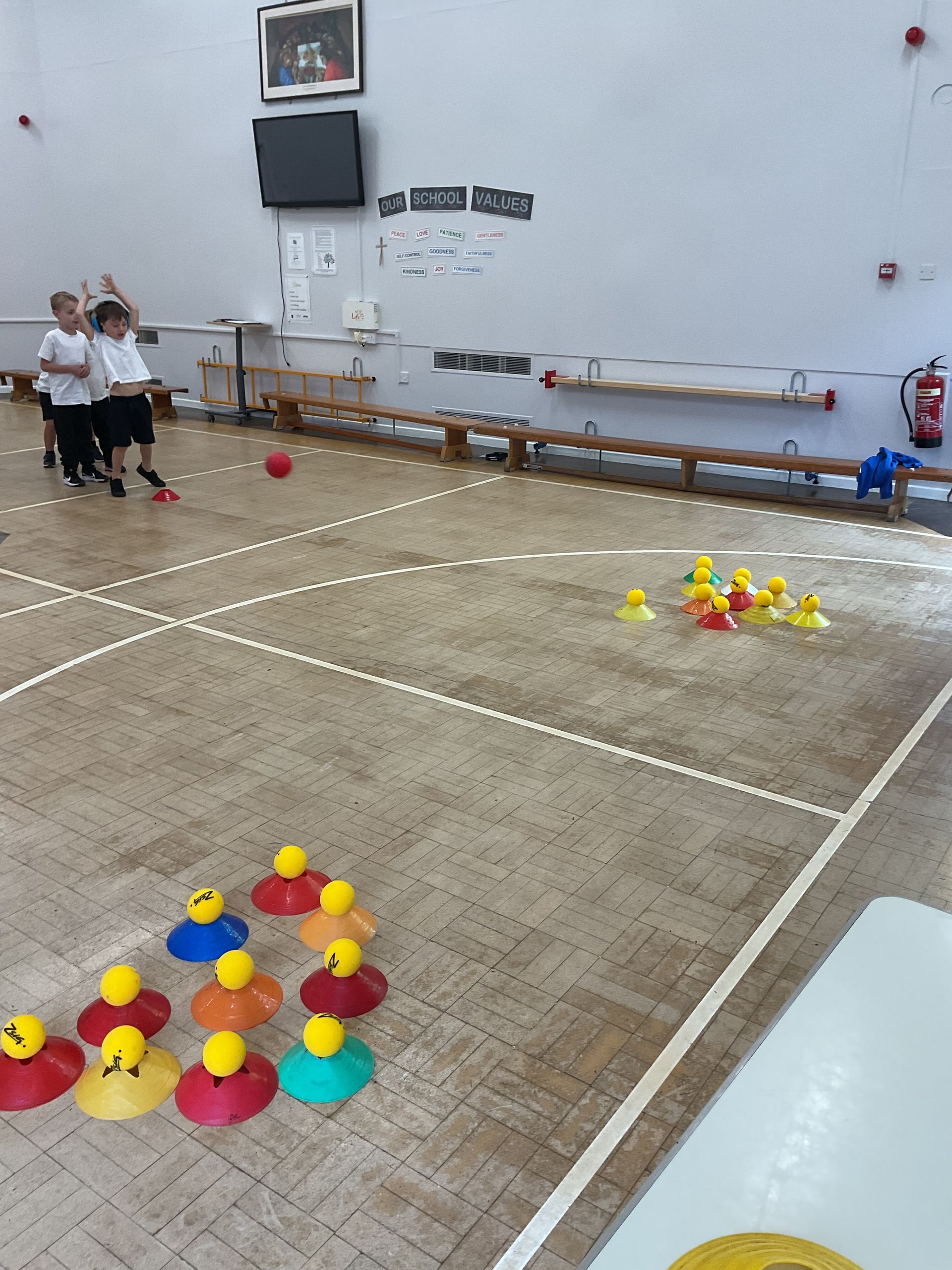 Reception: Bean bag tossing! The children played very well and had a great time playing in their first ever team event!